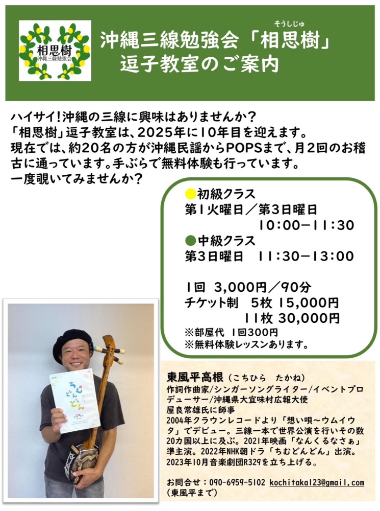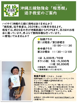 ※体験、見学はいつでも歓迎です。三線の貸し出しあり